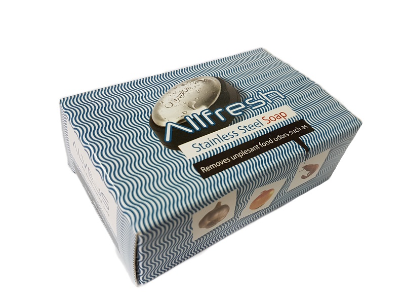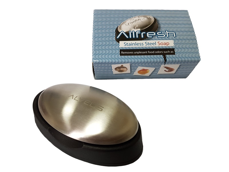 Allfresh- higieniczne, wykonane z najwyższej jakości stali, mydełko ALVEUS usuwa wszelkie niechciane zapachy i nieprzyjemną woń z rąk po kontakcie z silnie pachnącą żywnością tj. cebulą, czosnkiem, rybą, etc. Aby usunąć niechciany zapach umyj dłonie dłonie zimną wodą, pocierając je mydełkiem Allfresh jak zwykłym mydłem. Idea Allfresh polega na tym, że silnie pachnące produkty tj. cebula, czosnek, ryba wydzielają siarkę, która pozostawia na dłoniach nieprzyjemny zapach, a stal zatrzymuje na swojej powierzchni siarkę- źródło przykrego zapachu Twoich rąk.
