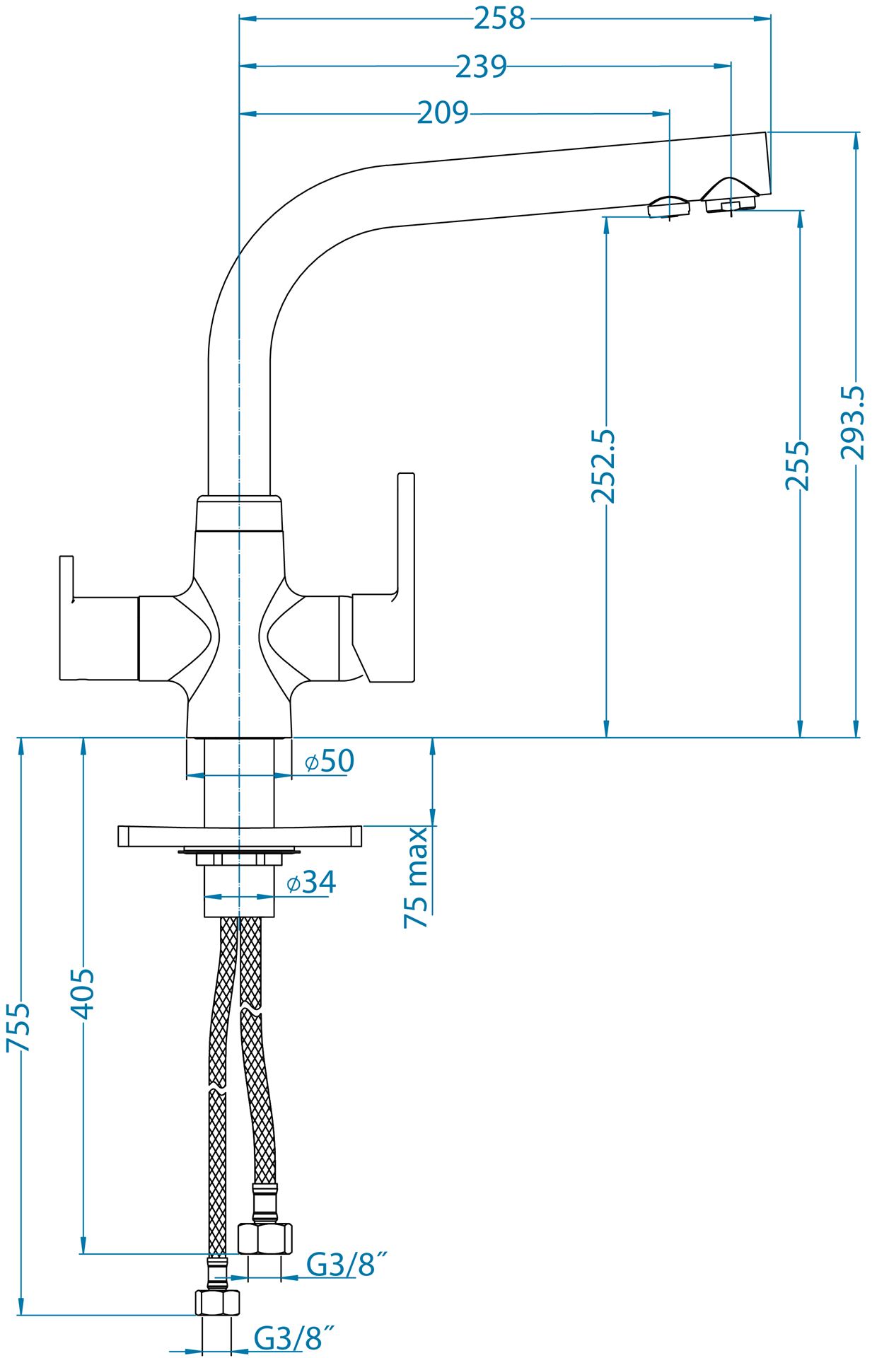 Baterie kuchenne przystosowane są do przepływu wody o ciśnieniu wody od 0,5 do 8 barów (rekomendowane ciśnienie to 1-5 barów).