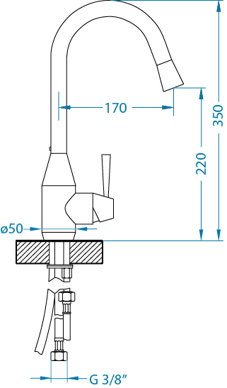 Baterie kuchenne przystosowane są do przepływu wody o ciśnieniu wody od 0,5 do 8 barów (rekomendowane ciśnienie to 1-5 barów).