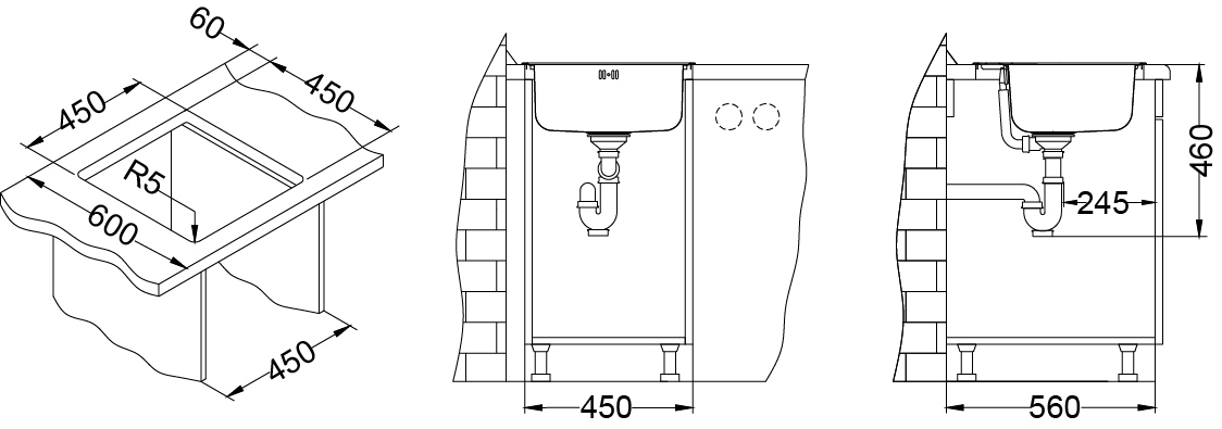 w różnych rozmiarach. Dostępne są zlewy nakładane
