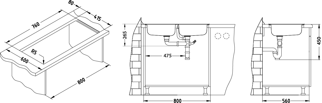 w różnych rozmiarach. Dostępne są zlewy nakładane