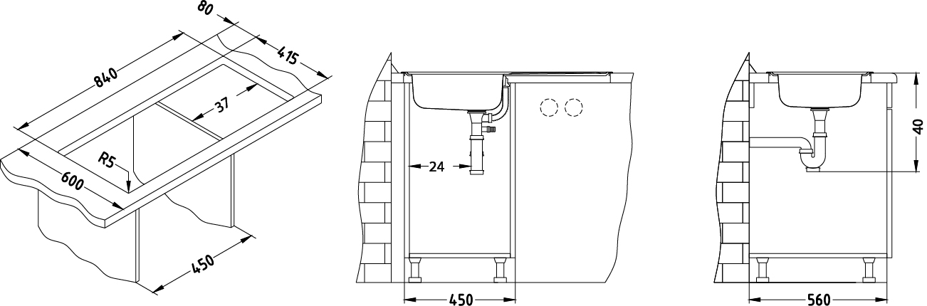 w różnych rozmiarach. Dostępne są zlewy nakładane