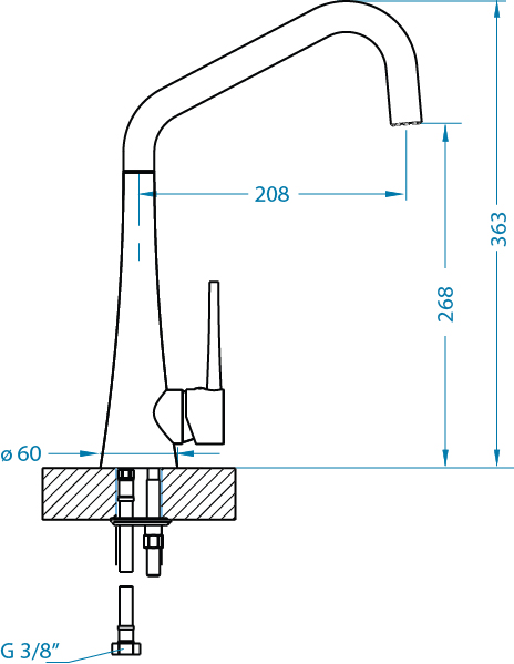 Baterie kuchenne przystosowane są do przepływu wody o ciśnieniu wody od 0,5 do 8 barów (rekomendowane ciśnienie to 1-5 barów).