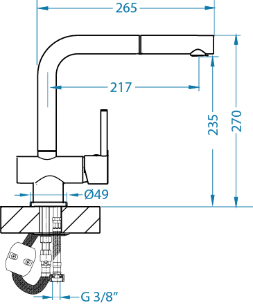 Baterie kuchenne przystosowane są do przepływu wody o ciśnieniu wody od 0,5 do 8 barów (rekomendowane ciśnienie to 1-5 barów).