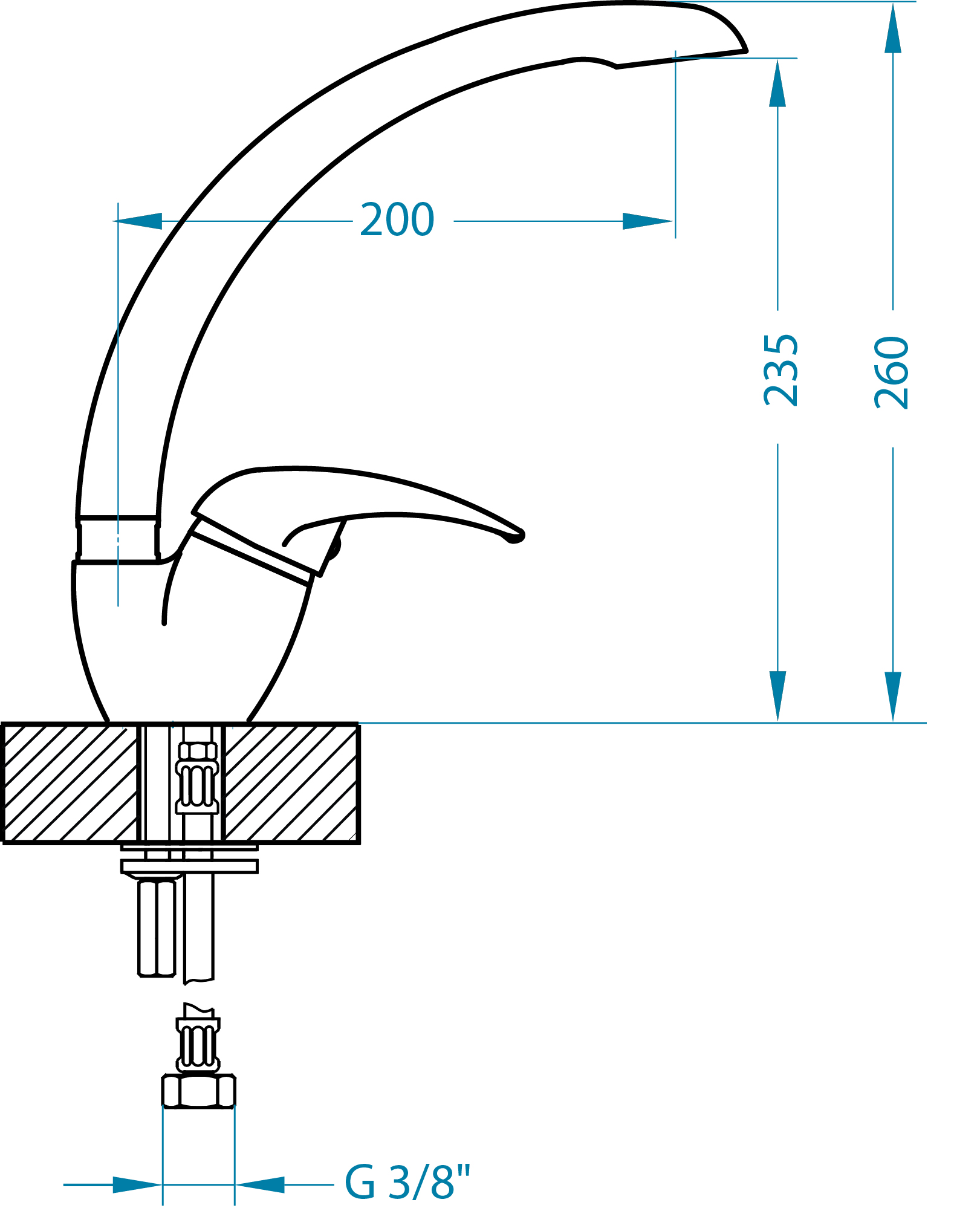 Baterie kuchenne przystosowane są do przepływu wody o ciśnieniu wody od 0,5 do 8 barów (rekomendowane ciśnienie to 1-5 barów).