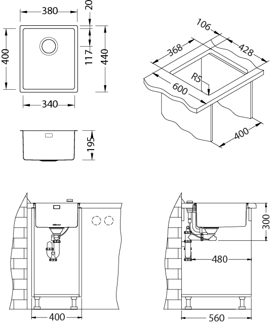 jakości stali nierdzewnej mają nieprzeciętną głębokość, a prosta forma (promień zaokrąglenia