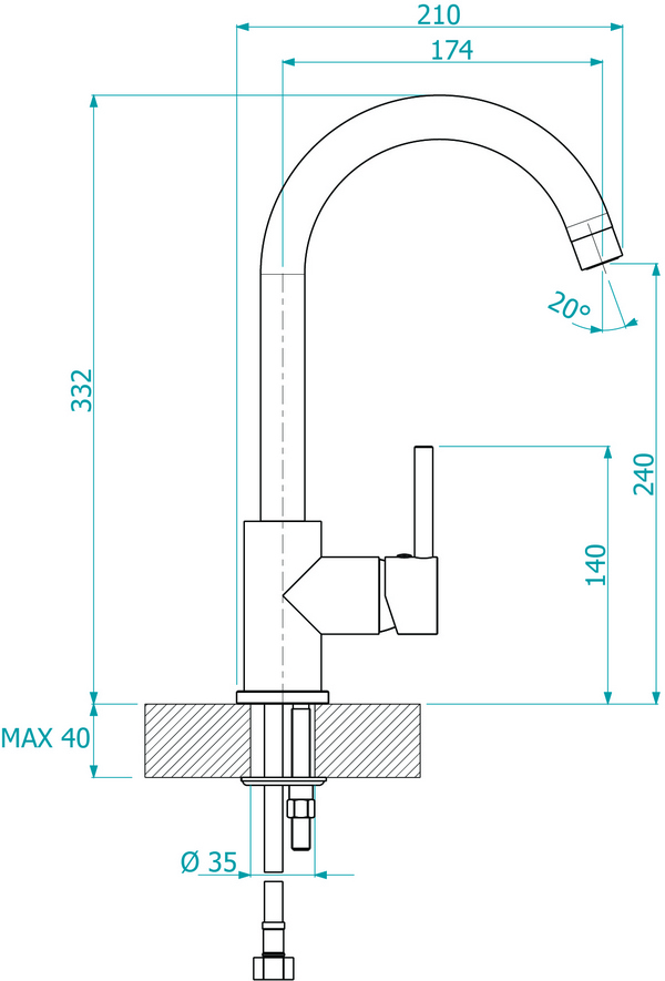 Baterie kuchenne przystosowane są do przepływu wody o ciśnieniu wody od 0,5 do 8 barów (rekomendowane ciśnienie to 1-5 barów).