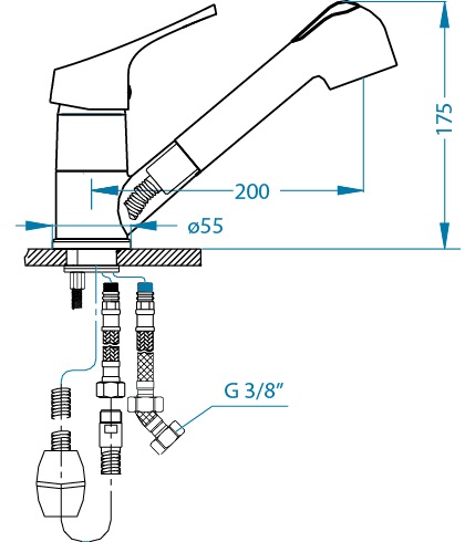 Baterie kuchenne przystosowane są do przepływu wody o ciśnieniu wody od 0,5 do 8 barów (rekomendowane ciśnienie to 1-5 barów).