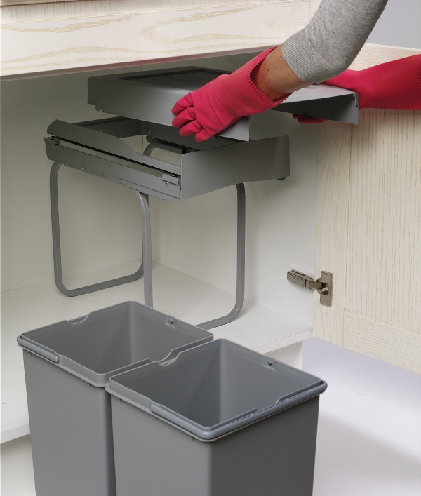 • wbudowane uchwyty ułatwiają wyciąganie koszy i stabilne umocowanie worków na śmieci