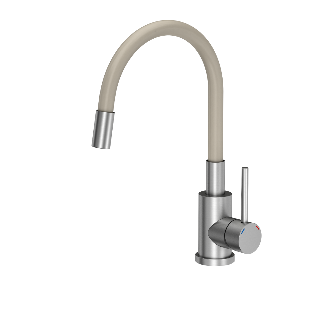 MAGGIE beżowa Stalowa bateria idealnie pasuje do najnowszych trendów!. Elementy baterii wykonane ze stali szlachetnej - gwarantuje wysoką trwałość i zerową zawartość ołowiu. Wylewka obrotowa 360° - umożliwia swobodne używanie. Perlator ECO - zapewnia oszczędność wody. Dźwignia jednouchwytowa– w łatwy i szybki sposób dostosujesz temperaturę i natężenie strumienia wody do swoich potrzeb. Głowica ceramiczna - zmniejsza możliwość powstawania kamiennych osadów i zanieczyszczeń. Mocowanie QFix - zapewnia łatwy i szybki montaż (również na blacie) oraz wysoką stabilność baterii. Stal szlachetna – niezwykły materiał Stal szlachetna charakteryzuje się wyjątkowymi właściwościami. Stal szlachetna to materiał, którego powierzchnia jest idealnie gładka (pozbawiona porów), dzięki czemu drobnoustroje i zanieczyszczenia nie przylegają do niej. Jest higieniczna i daje się łatwo wyczyścić. A jednocześnie jest bardzo wytrzymała. Jest to materiał ekologiczny i po przetopieniu może zostać ponownie wykorzystany. Pb FREE – materiał pozbawiony ołowiu Najbardziej niebezpiecznym dla zdrowia zanieczyszczeniem materiałów instalacyjnych jest ołów. Ołów jest bardzo szkodliwym dla zdrowia metalem ciężkim pojawiającym się w wodzie pitnej, która miała kontakt z instalacją wodociągową wykonaną przy użyciu elementów zawierających przekroczone, niedozwolone normami ilości ołowiu. Obecnie dopuszczalna zawartość ołowiu w wodzie nie może przekroczyć wartości maksymalnej 0,01 mg/l. Uznani producenci złączek i armatury stosują do produkcji elementów instalacji wodnych wyłącznie materiały zgodne z normami lub bezołowiowe. Stal szlachetna wykorzystywana do produkcji naszych baterii kuchennych jest wolna nawet od śladowych ilości ołowiu. QFix to prosty i szybki montaż baterii Bateria wyposażona jest standardowo w innowacyjny system montażu QFix, dzięki czemu instalację baterii zarówno na zlewozmywaku jak i na blacie kuchennym można prosto wykonać bez użycia narzędzi. System QFix to oszczędność czasu i nerwów! W komplecie aż 40cm wężyki podłączeniowe wody 3/8", mocowanie QFix, uszczelki, instrukcja montażu. Bateria zapakowana w wytrzymałe opakowanie tekturowe i woreczek dla lepszej ochrony powierzchni baterii.