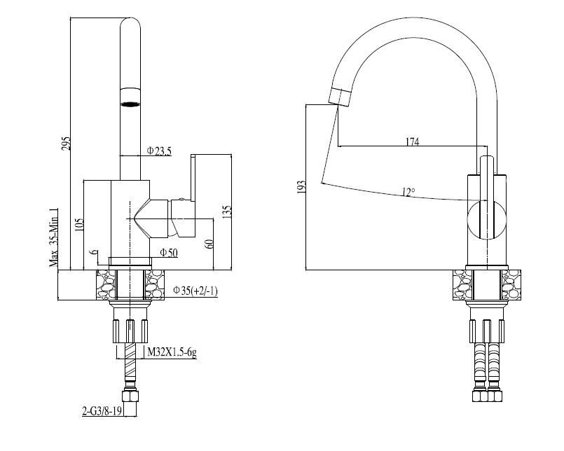 Baterie można montować na zlewie bądź na blacie kuchennym