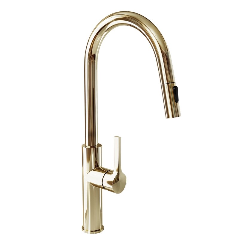 Krótki opis: bateria kuchenna w wyciąganą wylewką. Wykonanie: mosiądz. Uchwyt: stop cynku. Linia: EXCLUSIVEZłota bateria zlewozmywakowa z wyciąganą wylewkąZłota bateria kuchenna Divio zachwyca pięknym designem i funkcjonalnością. Została wykonana z dbałością o szczegóły, dlatego doskonale uzupełni kuchenną przestrzeń. Ogromną zaletą baterii jest wyciągana wylewka z solidnym mocowaniem, która pozwoli zadbać o najwyższy komfort zmywania. Elegancki, stylowy kształt, kolor jasnego złota i błyszczące wykończenie sprawiają, że bateria znajdzie zastosowanie zarówno w nowoczesnych, jak i klasycznych kuchniach.Zestaw zawiera: bateria, wężyki, zestaw mocujący, uszczelki.Zalety i korzyści dla użytkownika Wygodna w użytkowaniu - Divio to bateria z wyciąganą wylewką. Dzięki tej funkcji możesz skierować strumień wody, tam gdzie tego potrzebujesz. Wygodnie umyjesz naczynia, sprzątniesz strefę wokół zlewu, czy napełnisz wysoki garnek wodą. Wyjątkowe wzornictwo - bateria zlewozmywakowa Divio jest wykończona w kolorze jasnego złota, dlatego będzie eleganckim akcentem w kuchni. Trwała konstrukcja - zastosowany do produkcji baterii mosiądz cechuje się wysoką odpornością, co pozwoli użytkować baterię przez długie lata. Malowanie metodą PVD zwiększa odporność na zarysowanie, dzięki czemu przy odpowiedniej pielęgnacji nawet po długim czasie bateria będzie prezentować się jak nowa.Przeznaczenie: Bateria przeznaczona jest do użytku ze zlewozmywakami kuchennymi. Może być również montowana bezpośrednio na blacie.Materiały: Bateria została wykonana z mosiądzu, na który naniesiona została powłoka PVD w kolorze jasnego złota. Uchwyt jest ze stopu cynku.Dobrze wiedzieć!Bateria Divio Light Gold będzie znakomicie prezentować się w towarzystwie złotego okapu GLOBALO w odcieniu Light Gold. ID#448