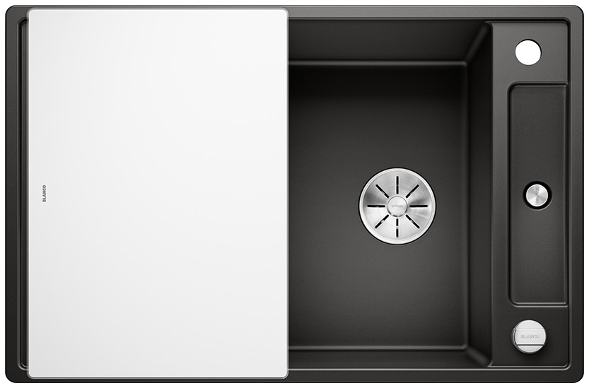 BLANCO AXIA III posiada przynajmniej pięć nowych zalet: większą pojemność komory, lepsze wykorzystanie dostępnej przestrzeni, innowacyjne akcesoria, płaskie krawędzie i nowy system odpływowy InFino®. Nawet ci z Państwa, którzy poszukują wyjątkowo dużej komory, znajdą ja w nowej wersji zlewozmywaka BLANCO AXIA 6 S III XL.