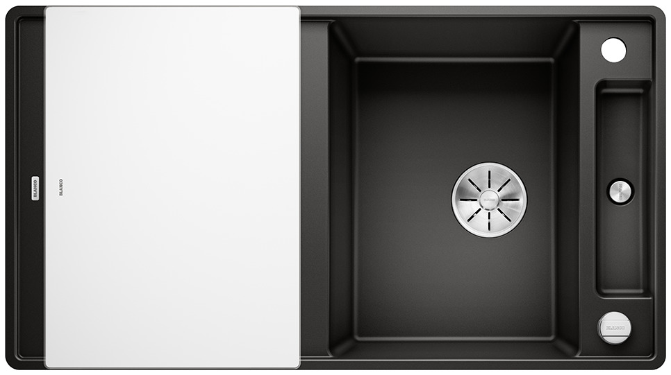 BLANCO AXIA III posiada przynajmniej pięć nowych zalet: większą pojemność komory, lepsze wykorzystanie dostępnej przestrzeni, innowacyjne akcesoria, płaskie krawędzie i nowy system odpływowy InFino®. Nawet ci z Państwa, którzy poszukują wyjątkowo dużej komory, znajdą ja w nowej wersji zlewozmywaka BLANCO AXIA 6 S III XL.