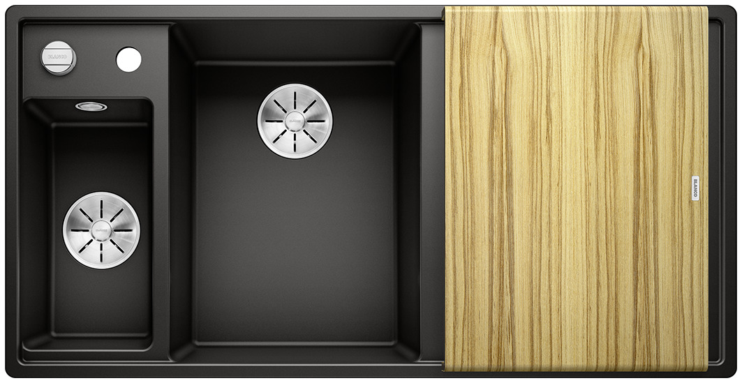 BLANCO AXIA III posiada przynajmniej pięć nowych zalet: większą pojemność komory, lepsze wykorzystanie dostępnej przestrzeni, innowacyjne akcesoria, płaskie krawędzie i nowy system odpływowy InFino®. Nawet ci z Państwa, którzy poszukują wyjątkowo dużej komory, znajdą ja w nowej wersji zlewozmywaka BLANCO AXIA 6 S III XL.