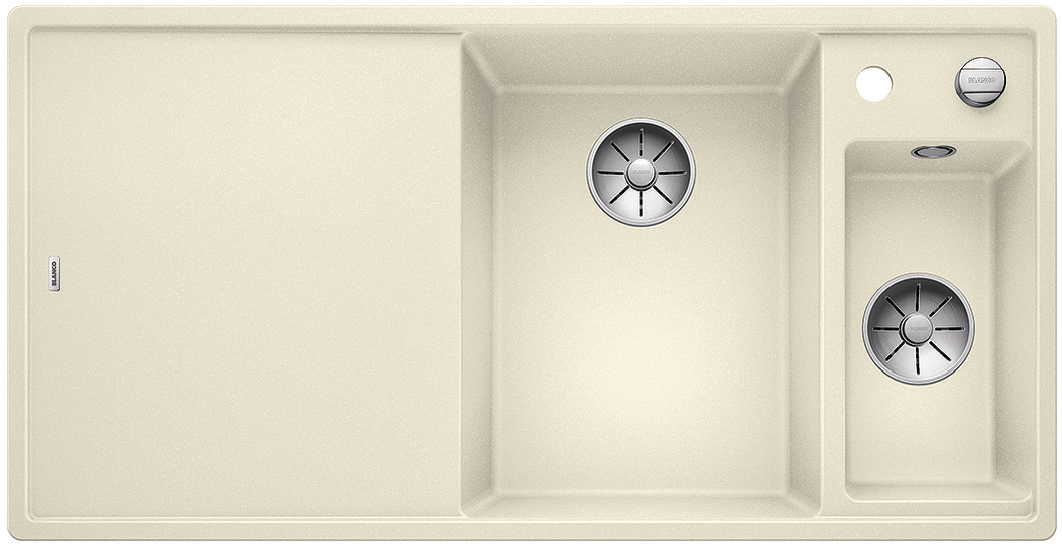 BLANCO AXIA III posiada przynajmniej pięć nowych zalet: większą pojemność komory, lepsze wykorzystanie dostępnej przestrzeni, innowacyjne akcesoria, płaskie krawędzie i nowy system odpływowy InFino®. Nawet ci z Państwa, którzy poszukują wyjątkowo dużej komory, znajdą ja w nowej wersji zlewozmywaka BLANCO AXIA 6 S III XL.