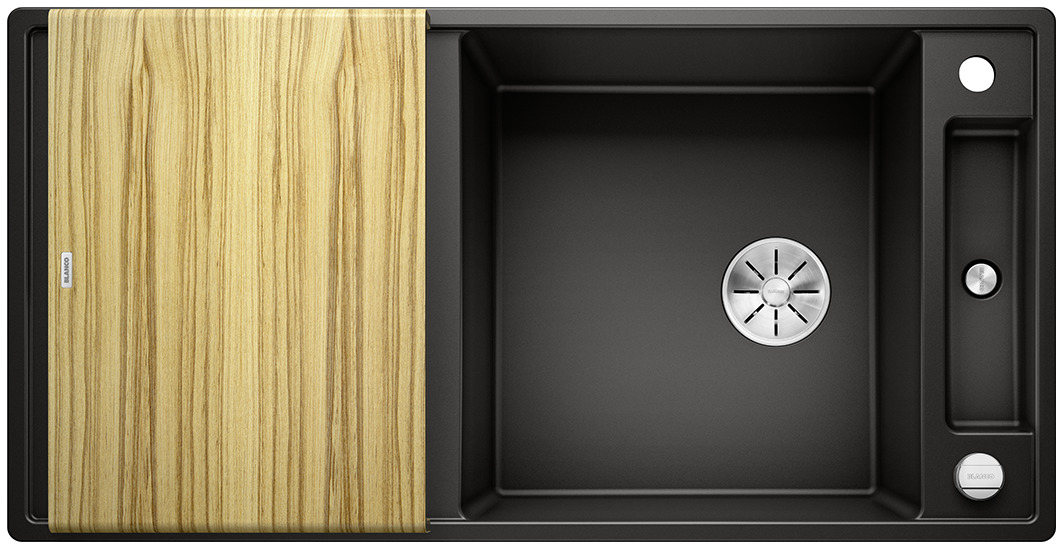 BLANCO AXIA III posiada przynajmniej pięć nowych zalet: większą pojemność komory, lepsze wykorzystanie dostępnej przestrzeni, innowacyjne akcesoria, płaskie krawędzie i nowy system odpływowy InFino®. Nawet ci z Państwa, którzy poszukują wyjątkowo dużej komory, znajdą ja w nowej wersji zlewozmywaka BLANCO AXIA 6 S III XL.