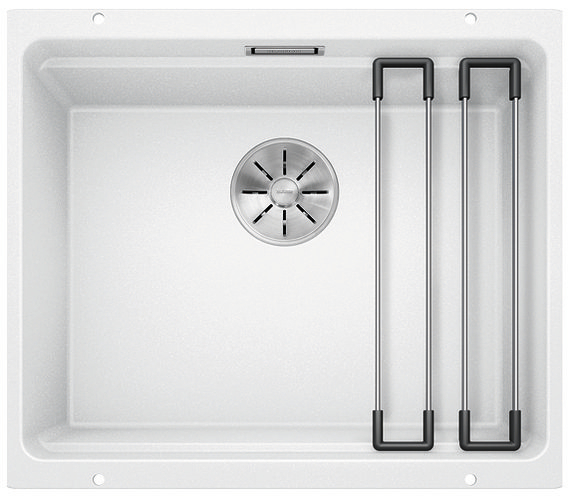 BLANCO ETAGON to wyjątkowy zlewozmywak posiadający wewnątrz komory wyprofilowaną krawędź, na której można oprzeć bardzo stabilne szyny ze stali szlachetnej. Na takich szynach postawimy np. pojemniki, garnki lub patelnie. Warzywa pokrojone na desce do krojenia, opartej na krawędzi komory, łatwo zsuniemy bezpośrednio do naczynia ustawionego na szynach w komorze. Dzięki temu zyskujemy dodatkowy funkcjonalny poziom, a zwykła pojedyncza komora staje się samowystarczalnym centrum kuchennym. Do tego modelu zlewozmywaka można dobrać praktyczną narożną odsączarkę, przenośny ociekacz i deskę do krojenia, która po zakryciu nią komory będzie stanowiła przedłużenie zlewozmywaka. BLANCO Etagon jest dostępny w wielu wariantach kolorystycznych w opcji z Silgranitu, a także w 4 kolorach w ceramice oraz w wersji ze stali szlachetnej.