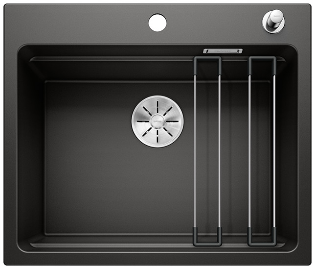BLANCO ETAGON to wyjątkowy zlewozmywak posiadający wewnątrz komory wyprofilowaną krawędź, na której można oprzeć bardzo stabilne szyny ze stali szlachetnej. Na takich szynach postawimy np. pojemniki, garnki lub patelnie. Warzywa pokrojone na desce do krojenia, opartej na krawędzi komory, łatwo zsuniemy bezpośrednio do naczynia ustawionego na szynach w komorze. Dzięki temu zyskujemy dodatkowy funkcjonalny poziom, a zwykła pojedyncza komora staje się samowystarczalnym centrum kuchennym. Do tego modelu zlewozmywaka można dobrać praktyczną narożną odsączarkę, przenośny ociekacz i deskę do krojenia, która po zakryciu nią komory będzie stanowiła przedłużenie zlewozmywaka. BLANCO Etagon jest dostępny w wielu wariantach kolorystycznych w opcji z Silgranitu, a także w 4 kolorach w ceramice oraz w wersji ze stali szlachetnej.
