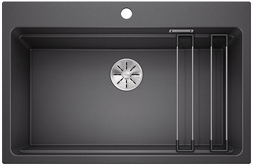BLANCO ETAGON to wyjątkowy zlewozmywak posiadający wewnątrz komory wyprofilowaną krawędź, na której można oprzeć bardzo stabilne szyny ze stali szlachetnej. Na takich szynach postawimy np. pojemniki, garnki lub patelnie. Warzywa pokrojone na desce do krojenia, opartej na krawędzi komory, łatwo zsuniemy bezpośrednio do naczynia ustawionego na szynach w komorze. Dzięki temu zyskujemy dodatkowy funkcjonalny poziom, a zwykła pojedyncza komora staje się samowystarczalnym centrum kuchennym. Do tego modelu zlewozmywaka można dobrać praktyczną narożną odsączarkę, przenośny ociekacz i deskę do krojenia, która po zakryciu nią komory będzie stanowiła przedłużenie zlewozmywaka. BLANCO Etagon jest dostępny w wielu wariantach kolorystycznych w opcji z Silgranitu, a także w 4 kolorach w ceramice oraz w wersji ze stali szlachetnej.