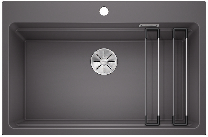 BLANCO ETAGON to wyjątkowy zlewozmywak posiadający wewnątrz komory wyprofilowaną krawędź, na której można oprzeć bardzo stabilne szyny ze stali szlachetnej. Na takich szynach postawimy np. pojemniki, garnki lub patelnie. Warzywa pokrojone na desce do krojenia, opartej na krawędzi komory, łatwo zsuniemy bezpośrednio do naczynia ustawionego na szynach w komorze. Dzięki temu zyskujemy dodatkowy funkcjonalny poziom, a zwykła pojedyncza komora staje się samowystarczalnym centrum kuchennym. Do tego modelu zlewozmywaka można dobrać praktyczną narożną odsączarkę, przenośny ociekacz i deskę do krojenia, która po zakryciu nią komory będzie stanowiła przedłużenie zlewozmywaka. BLANCO Etagon jest dostępny w wielu wariantach kolorystycznych w opcji z Silgranitu, a także w 4 kolorach w ceramice oraz w wersji ze stali szlachetnej.