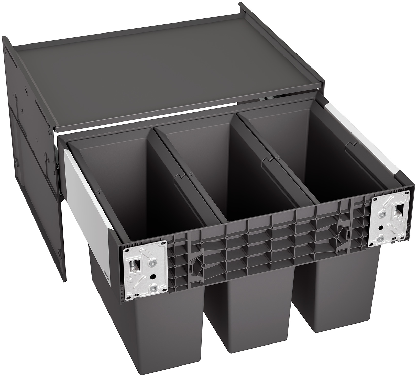 System do wysuwania kosza mocowany do frontu szafki, pokrywa systemowa, 3 x kosz 15 l