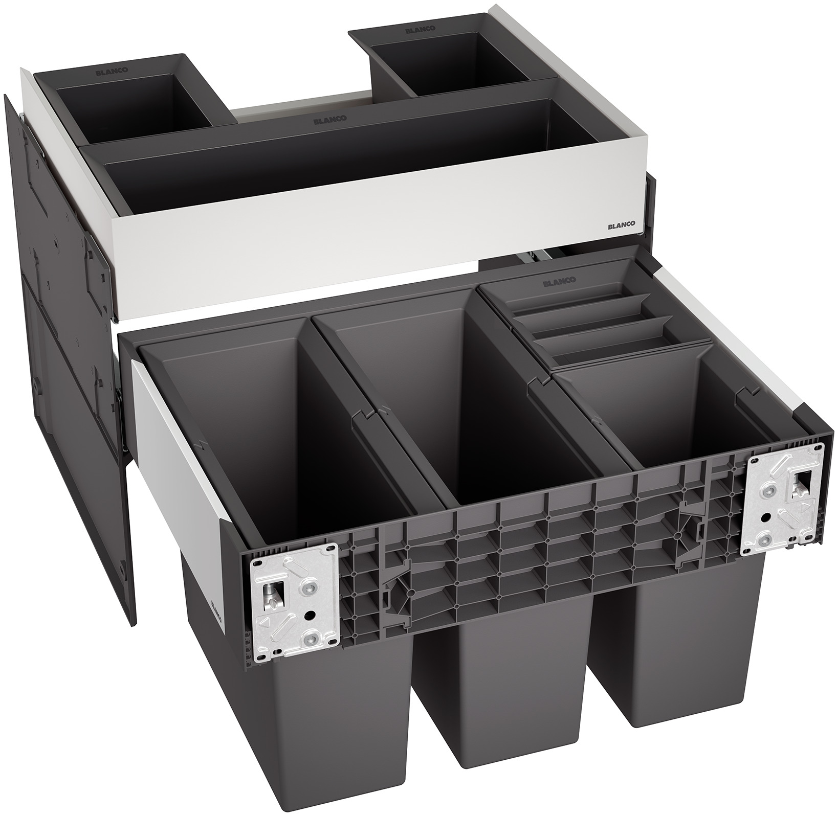 To, co było dobre, teraz stało się jeszcze lepsze. Dzięki BLANCO SELECT II przestrzeń pod zlewozmywakiem staje się idealnie dostosowana do potrzeb użytkowników. BLANCO SELECT II łączy w sobie wszystkie zalety praktycznego i higienicznego systemu segregacji odpadków. Możliwość dopasowania do każdej szafki, opcja dowolnej konfiguracji koszy różnej wielkości i umieszczenia wysuwanej szuflady organizacyjnej, a także prosty montaż bez nawiercania zapewniają optymalne wykorzystanie przestrzeni pod zlewozmywakiem i ułatwiają sortowanie domowych odpadów. Nakładana pokrywka z filtrem węglowym zapobiega wydostawaniu się zapachom z kosza bio.