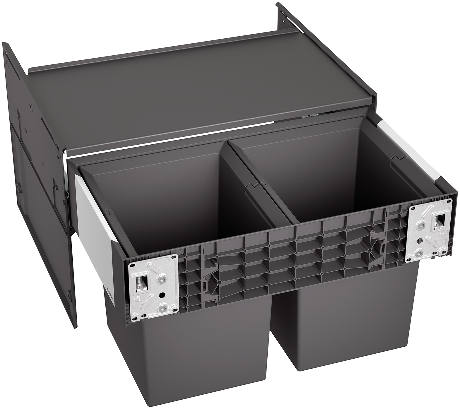 System do wysuwania kosza mocowany do frontu szafki, pokrywa systemowa, 2 x kosz 17 l