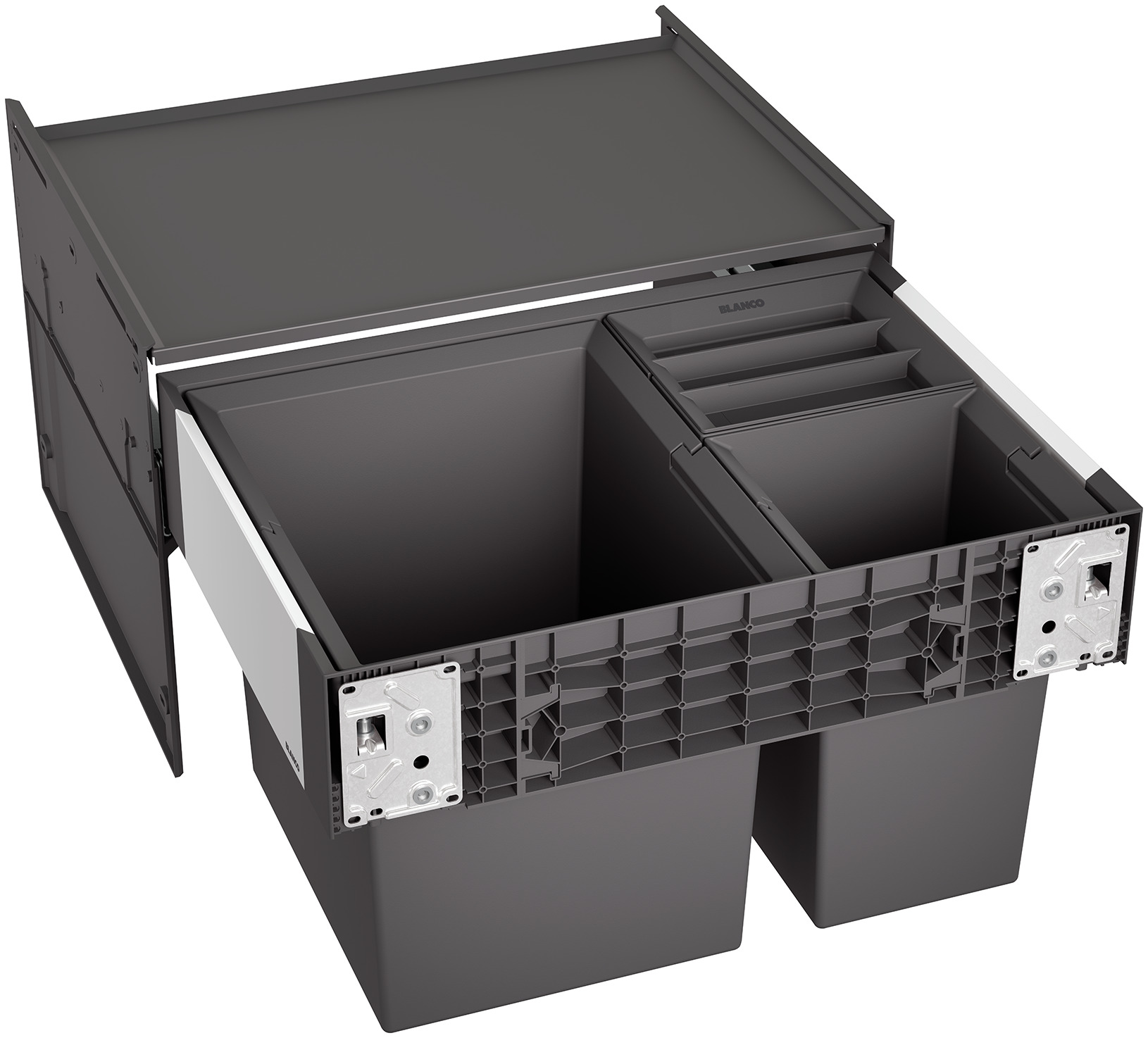 To, co było dobre, teraz stało się jeszcze lepsze. Dzięki BLANCO SELECT II przestrzeń pod zlewozmywakiem staje się idealnie dostosowana do potrzeb użytkowników. BLANCO SELECT II łączy w sobie wszystkie zalety praktycznego i higienicznego systemu segregacji odpadków. Możliwość dopasowania do każdej szafki, opcja dowolnej konfiguracji koszy różnej wielkości i umieszczenia wysuwanej szuflady organizacyjnej, a także prosty montaż bez nawiercania zapewniają optymalne wykorzystanie przestrzeni pod zlewozmywakiem i ułatwiają sortowanie domowych odpadów. Nakładana pokrywka z filtrem węglowym zapobiega wydostawaniu się zapachom z kosza bio.