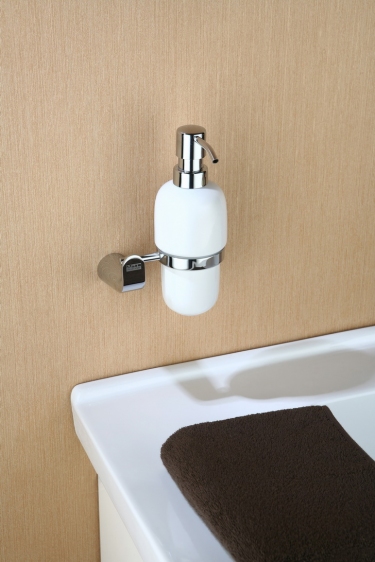 – materiał: mosiądz– wykończenie: chrom– biały pojemnik dozwnika wykonany z porcelanyLinia wzornictwa dopasowana do baterii serii EMIRA