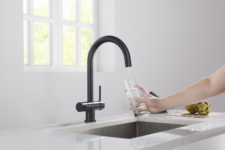 BATERIA Z PODŁĄCZENIEM DO WODY FILTROWANEJ– wykończenie: CZARNY MAT– wylewka obrotowa do 360°– głowice ceramiczne– 2 elastyczne wężyki podłączeniowe 3/8“ – 400 mm– sztywna rurka z szybkazłączką na końcuBATERIA Z DWOMA NIEZALEŻNYMI OBWODAMI:– mieszacz wody ciepłej i zimnej (prawa strona)– podłączenie do wody filtrowanej (lewa strona)