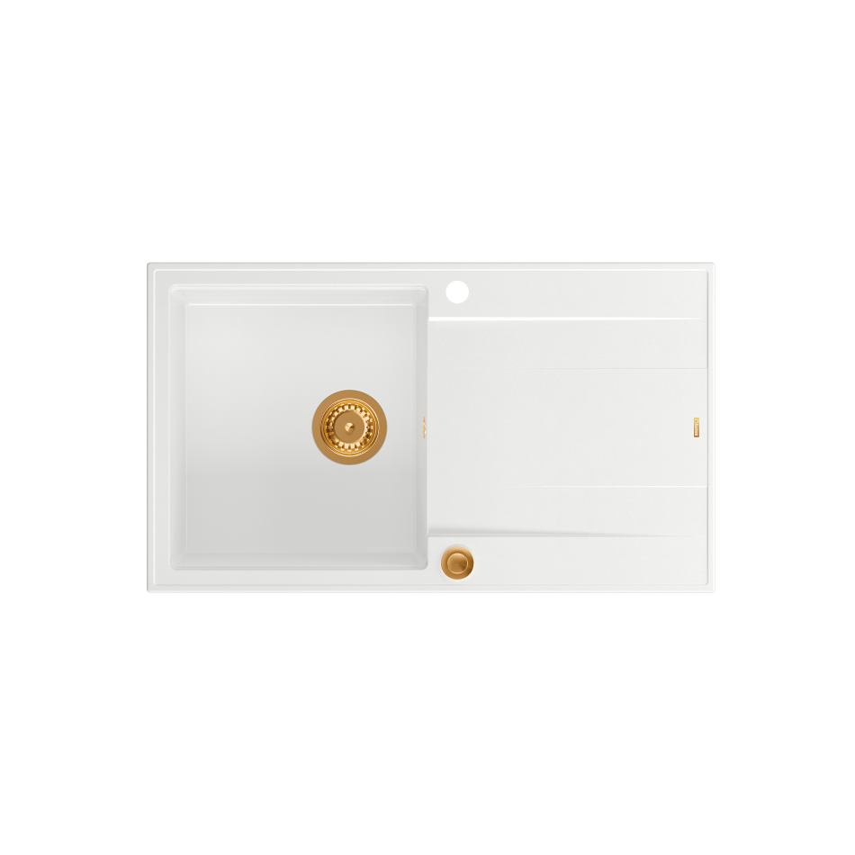 Materiał GraniteQ stworzony jest z drobnych cząsteczek granitu (75-80%) połączonych ze sobą za pomocą wysokiej jakości spoiwa (20-25%), dzięki czemu zlewozmywak charakteryzuje się wyjątkową wytrzymałością i odpornością. Zastosowanie bardzo drobnych cząsteczek granitu minimalizuje przestrzeń wypełnioną spoiwem, dzięki czemu udało się uzyskać zlewozmywak jedwabiście gładki i delikatny w dotyku, co również ma ogromne znaczenie podczas czyszczenia i konserwacji, ale przede wszystkim dla higieny i zachowania czystości. GraniteQ to nowoczesny materiał w opalizujących kolorach uzyskanych dzięki domieszce metalicznych drobinek. Nawet najbardziej wymagający użytkownicy będą usatysfakcjonowani gdy światło z oświetlenia umieszczonego nad blatem sprawi, iż kuchnia zabłyszczy delikatnym połyskiem swojej nowej biżuterii: zlewozmywaka marki Quadron. Efekt ten zostanie spotęgowany dzięki dodaniu baterii, odpływu i przelewu wykonanych ze stali szlachetnej SteelQ . Cechy zlewozmywaka: Zlewozmywak wykonany z GraniteQ gwarantuje najwyższą higieniczność i trwałość . Nowoczesne wzornictwo – dostosowane do aktualnych trendów. GraniteQ – zapewnia dużą twardość, trwałość i higieniczność powierzchni Rozetka przelewu również wykonana jest ze stali szlachetnej SteelQ w kolorze dopasowanym do koloru pozostałych elementów co jeszcze bardziej podkreśla jego urodę. Głębokie i pojemne komory zlewozmywaków Quadron to ich cecha wyróżniająca, która zapewnia duży komfort użytkowania. Zlewozmywak wyposażony jest w odpływ Push-2-Open 3 1/2" z syfonem ze stali szlachetnej SteelQ w kolorze dopasowanym do pozostałych elementów co nadaje produktowi elegancki wygląd oraz w syfon z możliwością podłączenia zmywarki lub pralki