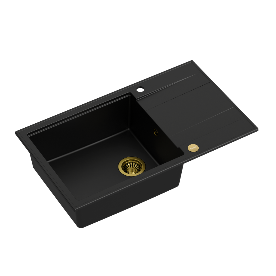 EVAN GraniteQ to kolekcja skierowana do wymagających użytkowników.Z uwagi na rozmiar komory,oraz wielkość zlewozmywaka, dysponujemy wystarczającym zakresem strefy roboczej, również na powierzchni ociekowej. Nowoczesne wzornictwo oraz kolorystyka zarówno samego produktu, jak i elementów uzupełniających, przypadnie do gustu nawet najbardziej pryncypialnym klientom. Z lewozmywak wykonany z GraniteQ gwarantuje najwyższą higieniczność i trwałość . Nowoczesne wzornictwo – dostosowane do aktualnych trendów. GraniteQ – zapewnia dużą twardość, trwałość i higieniczność powierzchni Zlewozmywak odwracalny – komora może być zamontowana po prawej lub lewej stronie. Rozetka przelewu również wykonana jest ze stali szlachetnej SteelQ w technologii PVD w kolorze dopasowanym do koloru pozostałych elementów co jeszcze bardziej podkreśla jego urodę. Zlewozmywak wyposażony jest w odpływ ze stali szlachetnej SteelQ w technologii PVD w kolorze dopasowanym do pozostałych elementów co nadaje produktowi elegancki wygląd oraz w syfon z możliwością podłączenia zmywarki lub pralki Głębokie i pojemne komory zlewozmywaków Quadron to ich cecha wyróżniająca, która zapewnia duży komfort użytkowania. Wersja Premium Głębokie komory zlewozmywaków Quadron to ich cecha wyróżniająca. Pojemna komora to przede wszystkim duży komfort użytkowania. Zmywanie dużych garnków czy blach nie stanowi problemu dzięki temu, że pojemność zlewozmywaka jest zwiększona o kilka litrów. Zlewozmywak wyposażony jest w odpływ ze stali szlachetnej SteelQ w technologii PVD w wybranym kolorze co nadaje mu elegancki wygląd. GraniteQ - wygląd & trwałość Produkty wykonane z GraniteQ zapewniają nowoczesny wygląd i długowieczność produktu. Są łatwe do utrzymania w czystości, odporne na wysokie temperatury (gorące garnki) oraz tak częste w kuchni nagłe jej zmiany (wrząca i zimna woda), odporne na działanie czynników chemicznych oraz wiele rodzajów osadów (np. po kawie czy herbacie). GraniteQ – wytrzymałość & higiena Materiał GraniteQ stworzony jest z drobnych cząsteczek granitu (75-80%) połączonych ze sobą za pomocą wysokiej jakości spoiwa (20-25%), dzięki czemu zlewozmywak charakteryzuje się wyjątkową wytrzymałością i odpornością. Zastosowanie bardzo drobnych cząsteczek granitu minimalizuje przestrzeń wypełnioną spoiwem, dzięki czemu udało się uzyskać zlewozmywak jedwabiście gładki i delikatny w dotyku, co również ma ogromne znaczenie podczas czyszczenia i konserwacji, ale przede wszystkim dla higieny i zachowania czystości. GraniteQ – metaliczny blask GraniteQ to nowoczesny materiał w opalizujących kolorach uzyskanych dzięki domieszce metalicznych drobinek. Nawet najbardziej wymagający użytkownicy będą usatysfakcjonowani gdy światło z oświetlenia umieszczonego nad blatem sprawi, iż kuchnia zabłyszczy delikatnym połyskiem swojej nowej biżuterii: zlewozmywaka marki Quadron. Efekt ten zostanie spotęgowany dzięki dodaniu baterii, odpływu i przelewu wykonanych ze stali szlachetnej SteelQ w technologii PVD w kolorach złota lub miedzi.