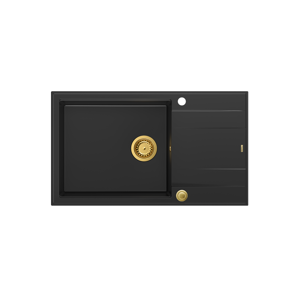 EVAN 136 XL GraniteQ zlewozmywak z syfonem Push To Open 1-komorowy z/o (860x500x210; kom. 420x490) pure carbon / elementy złoteEVAN 136 XL GraniteQ zlewozmywak z syfonem Push To Open 1-komorowy z/o (860x500x210; kom. 420x490) pure carbon / elementy złote