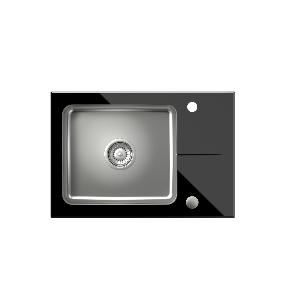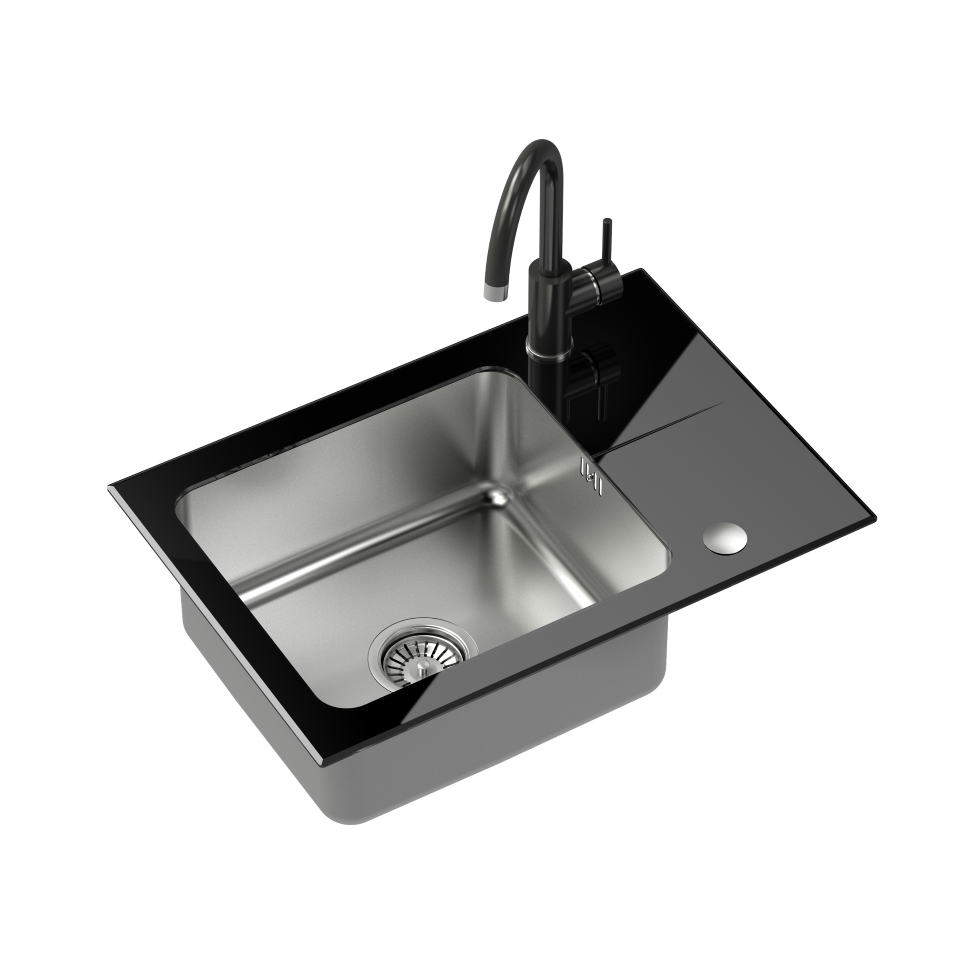 Strona główna » KUCHNIA » Hugh 116 komora stalowa z czarnym blatem szklanym z syfonem i zaślepką (640x440/R35) + NAOMI SteelQ stalowa bateria kuchenna czarny połysk