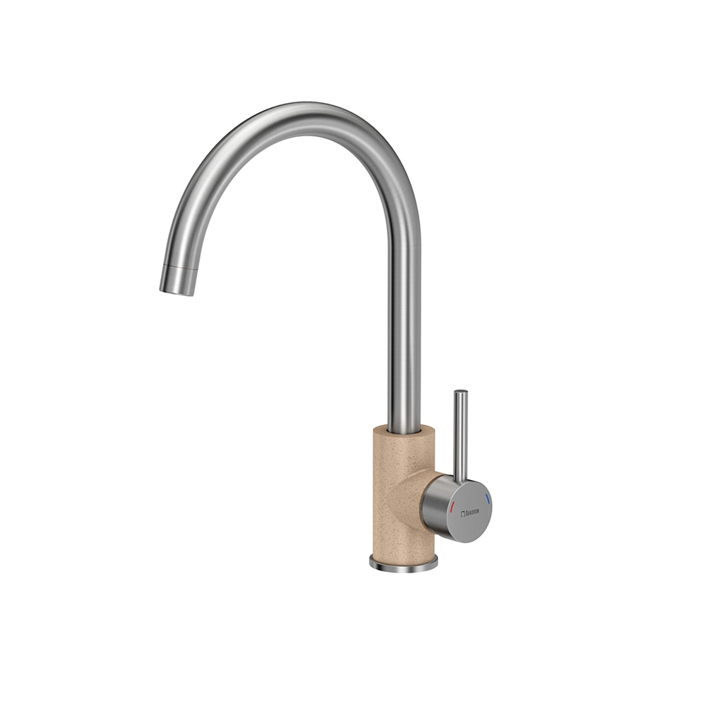 INGRID SteelQ stal szlachetna / beżowy metalik Stalowa/Beżowa bateria idealnie pasuje do najnowszych trendów! Elementy baterii wykonane ze stali szlachetnej - gwarantuje wysoką trwałość i zerową zawartość ołowiu. Wylewka obrotowa 360° - umożliwia swobodne używanie. Perlator ECO - zapewnia oszczędność wody. Dźwignia jednouchwytowa– w łatwy i szybki sposób dostosujesz temperaturę i natężenie strumienia wody do swoich potrzeb. Głowica ceramiczna - zmniejsza możliwość powstawania kamiennych osadów i zanieczyszczeń. Mocowanie QFix - zapewnia łatwy i szybki montaż (również na blacie) oraz wysoką stabilność baterii. Stal szlachetna – niezwykły materiał Stal szlachetna charakteryzuje się wyjątkowymi właściwościami. Stal szlachetna to materiał, którego powierzchnia jest idealnie gładka (pozbawiona porów), dzięki czemu drobnoustroje i zanieczyszczenia nie przylegają do niej. Jest higieniczna i daje się łatwo wyczyścić. A jednocześnie jest bardzo wytrzymała. Jest to materiał ekologiczny i po przetopieniu może zostać ponownie wykorzystany. Pb FREE – materiał pozbawiony ołowiu Najbardziej niebezpiecznym dla zdrowia zanieczyszczeniem materiałów instalacyjnych jest ołów. Ołów jest bardzo szkodliwym dla zdrowia metalem ciężkim pojawiającym się w wodzie pitnej, która miała kontakt z instalacją wodociągową wykonaną przy użyciu elementów zawierających przekroczone, niedozwolone normami ilości ołowiu. Obecnie dopuszczalna zawartość ołowiu w wodzie nie może przekroczyć wartości maksymalnej 0,01 mg/l. Uznani producenci złączek i armatury stosują do produkcji elementów instalacji wodnych wyłącznie materiały zgodne z normami lub bezołowiowe. Stal szlachetna wykorzystywana do produkcji naszych baterii kuchennych jest wolna nawet od śladowych ilości ołowiu. QFix to prosty i szybki montaż baterii Bateria wyposażona jest standardowo w innowacyjny system montażu QFix, dzięki czemu instalację baterii zarówno na zlewozmywaku jak i na blacie kuchennym można prosto wykonać bez użycia narzędzi. System QFix to oszczędność czasu i nerwów! W komplecie aż 40 cm wężyki podłączeniowe wody 3/8", mocowanie QFix, uszczelki, instrukcja montażu. Bateria zapakowana w wytrzymałe opakowanie tekturowe i specjalną piankę dla lepszej ochrony powierzchni baterii.