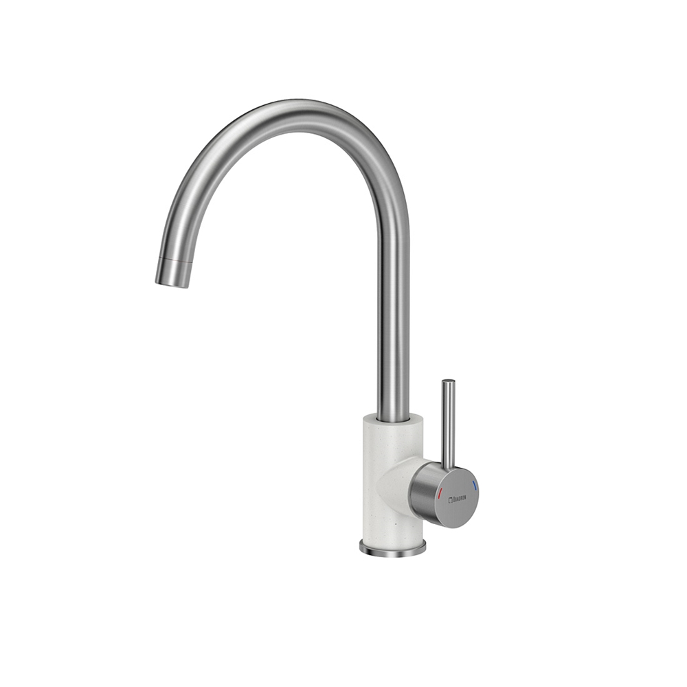 INGRID SteelQ stal szlachetna / biały metalik Stalowa/Biała bateria idealnie pasuje do najnowszych trendów! Elementy baterii wykonane ze stali szlachetnej - gwarantuje wysoką trwałość i zerową zawartość ołowiu. Wylewka obrotowa 360° - umożliwia swobodne używanie. Perlator ECO - zapewnia oszczędność wody. Dźwignia jednouchwytowa– w łatwy i szybki sposób dostosujesz temperaturę i natężenie strumienia wody do swoich potrzeb. Głowica ceramiczna - zmniejsza możliwość powstawania kamiennych osadów i zanieczyszczeń. Mocowanie QFix - zapewnia łatwy i szybki montaż (również na blacie) oraz wysoką stabilność baterii. Stal szlachetna – niezwykły materiał Stal szlachetna charakteryzuje się wyjątkowymi właściwościami. Stal szlachetna to materiał, którego powierzchnia jest idealnie gładka (pozbawiona porów), dzięki czemu drobnoustroje i zanieczyszczenia nie przylegają do niej. Jest higieniczna i daje się łatwo wyczyścić. A jednocześnie jest bardzo wytrzymała. Jest to materiał ekologiczny i po przetopieniu może zostać ponownie wykorzystany. Pb FREE – materiał pozbawiony ołowiu Najbardziej niebezpiecznym dla zdrowia zanieczyszczeniem materiałów instalacyjnych jest ołów. Ołów jest bardzo szkodliwym dla zdrowia metalem ciężkim pojawiającym się w wodzie pitnej, która miała kontakt z instalacją wodociągową wykonaną przy użyciu elementów zawierających przekroczone, niedozwolone normami ilości ołowiu. Obecnie dopuszczalna zawartość ołowiu w wodzie nie może przekroczyć wartości maksymalnej 0,01 mg/l. Uznani producenci złączek i armatury stosują do produkcji elementów instalacji wodnych wyłącznie materiały zgodne z normami lub bezołowiowe. Stal szlachetna wykorzystywana do produkcji naszych baterii kuchennych jest wolna nawet od śladowych ilości ołowiu. QFix to prosty i szybki montaż baterii Bateria wyposażona jest standardowo w innowacyjny system montażu QFix, dzięki czemu instalację baterii zarówno na zlewozmywaku jak i na blacie kuchennym można prosto wykonać bez użycia narzędzi. System QFix to oszczędność czasu i nerwów! W komplecie aż 40 cm wężyki podłączeniowe wody 3/8", mocowanie QFix, uszczelki, instrukcja montażu. Bateria zapakowana w wytrzymałe opakowanie tekturowe i specjalną piankę dla lepszej ochrony powierzchni baterii.