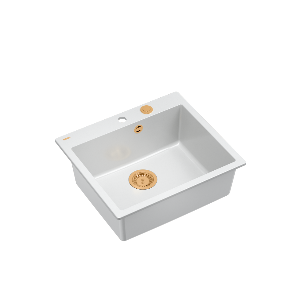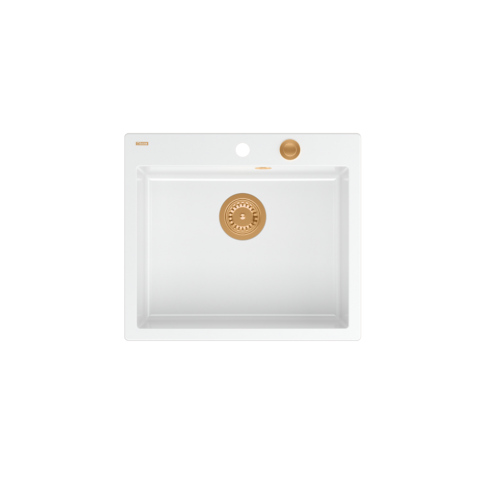 MORGAN 110 GraniteQ zlewozmywak snow white z syfonem Push To Open kol. miedziany 1-komorowy b/o + zaczepy 4 sztMORGAN 110 GraniteQ zlewozmywak snow white z syfonem Push To Open kol. miedziany 1-komorowy b/o + zaczepy 4 szt
