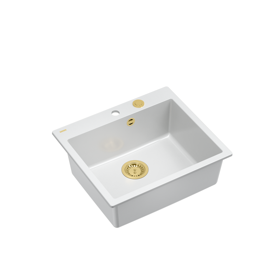 MORGAN 110 GraniteQ zlewozmywak snow white z syfonem Push To Open kol. złoty 1-komorowy b/o + zaczepy 4 sztMORGAN 110 GraniteQ zlewozmywak snow white z syfonem Push To Open kol. złoty 1-komorowy b/o + zaczepy 4 szt