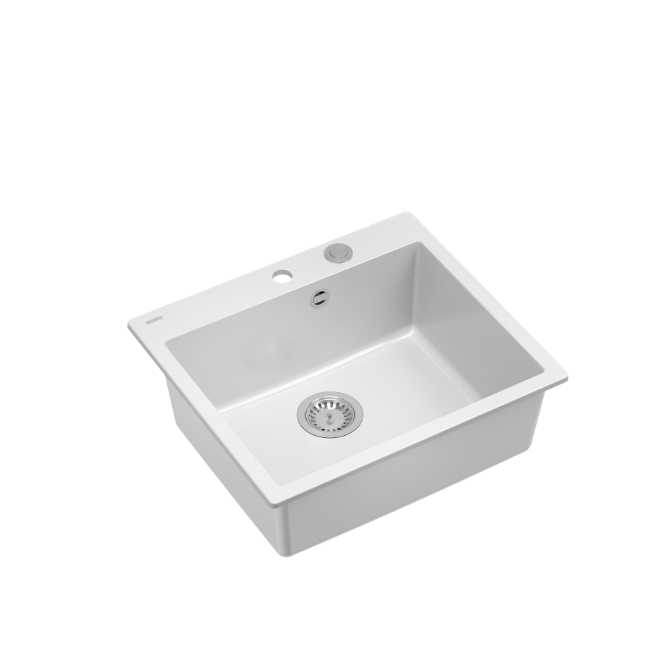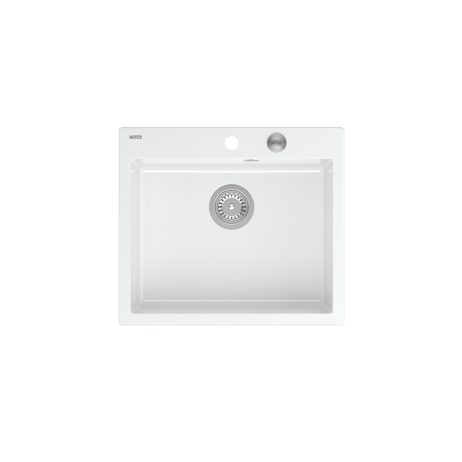 MORGAN 110 GraniteQ zlewozmywak snow white z syfonem Push To Open stal szlachetna 1-komorowy b/o + zaczepy 4 sztMORGAN 110 GraniteQ zlewozmywak snow white z syfonem Push To Open stal szlachetna 1-komorowy b/o + zaczepy 4 szt
