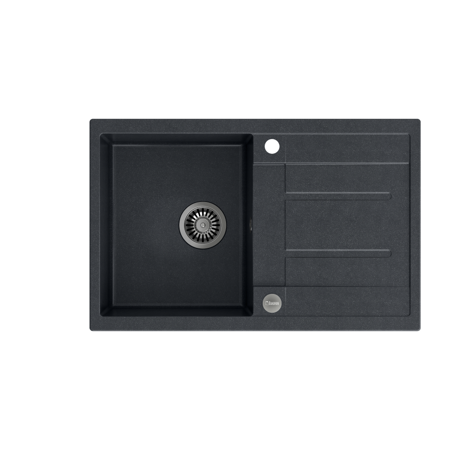 MORGAN 111 GraniteQ black diamond/elementy stalowe Zlewozmywak wykonany z GraniteQ gwarantuje najwyższą higieniczność i trwałość . Nowoczesne wzornictwo – dostosowane do aktualnych trendów. GraniteQ – zapewnia dużą twardość, trwałość i higieniczność powierzchni Zlewozmywak odwracalny – komora może być zamontowana po prawej lub lewej stronie. Rozetka przelewu również wykonana jest ze stali szlachetnej SteelQ w kolorze dopasowanym do koloru pozostałych elementów co jeszcze bardziej podkreśla jego urodę. Zlewozmywak wyposażony jest w odpływ ze stali szlachetnej SteelQ w kolorze dopasowanym do pozostałych elementów co nadaje produktowi elegancki wygląd oraz w syfon z możliwością podłączenia zmywarki lub pralki Głębokie i pojemne komory zlewozmywaków Quadron to ich cecha wyróżniająca, która zapewnia duży komfort użytkowania. Łatwy montaż - w komplecie zaczepy mocujące Wersja Premium Głębokie komory zlewozmywaków Quadron to ich cecha wyróżniająca. Pojemna komora to przede wszystkim duży komfort użytkowania. Zmywanie dużych garnków czy blach nie stanowi problemu dzięki temu, że pojemność zlewozmywaka jest zwiększona o kilka litrów. Zlewozmywak wyposażony jest w odpływ ze stali szlachetnej SteelQ . GraniteQ - wygląd & trwałość Produkty wykonane z GraniteQ zapewniają nowoczesny wygląd i długowieczność produktu. Są łatwe do utrzymania w czystości, odporne na wysokie temperatury (gorące garnki) oraz tak częste w kuchni nagłe jej zmiany (wrząca i zimna woda), odporne na działanie czynników chemicznych oraz wiele rodzajów osadów (np. po kawie czy herbacie). GraniteQ – wytrzymałość & higiena Materiał GraniteQ stworzony jest z drobnych cząsteczek granitu (75-80%) połączonych ze sobą za pomocą wysokiej jakości spoiwa (20-25%), dzięki czemu zlewozmywak charakteryzuje się wyjątkową wytrzymałością i odpornością. Zastosowanie bardzo drobnych cząsteczek granitu minimalizuje przestrzeń wypełnioną spoiwem, dzięki czemu udało się uzyskać zlewozmywak jedwabiście gładki i delikatny w dotyku, co również ma ogromne znaczenie podczas czyszczenia i konserwacji, ale przede wszystkim dla higieny i zachowania czystości. GraniteQ – metaliczny blask GraniteQ to nowoczesny materiał w opalizujących kolorach uzyskanych dzięki domieszce metalicznych drobinek. Nawet najbardziej wymagający użytkownicy będą usatysfakcjonowani gdy światło z oświetlenia umieszczonego nad blatem sprawi, iż kuchnia zabłyszczy delikatnym połyskiem swojej nowej biżuterii: zlewozmywaka marki Quadron. Efekt ten zostanie spotęgowany dzięki dodaniu baterii, odpływu i przelewu wykonanych ze stali szlachetnej SteelQ .