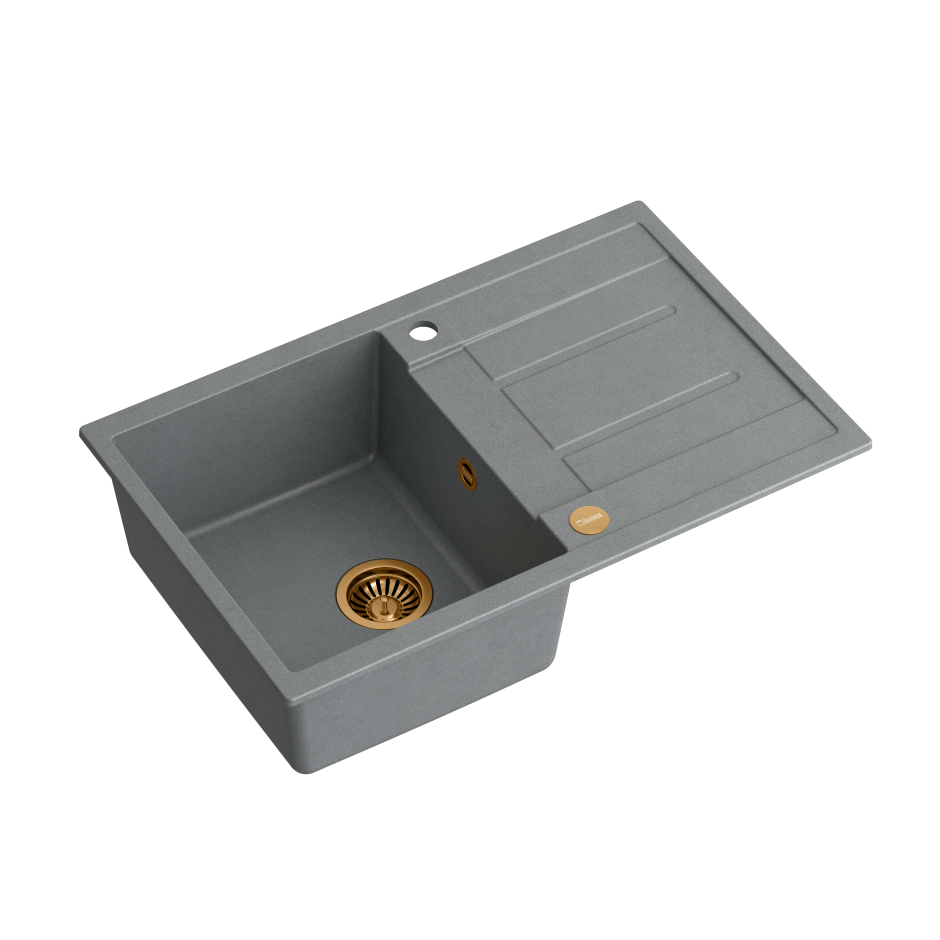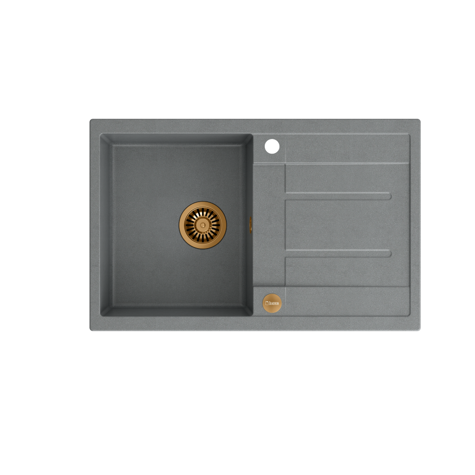 MORGAN 111 GraniteQ silver stone/elementy miedziane Zlewozmywak wykonany z GraniteQ gwarantuje najwyższą higieniczność i trwałość . Nowoczesne wzornictwo – dostosowane do aktualnych trendów. GraniteQ – zapewnia dużą twardość, trwałość i higieniczność powierzchni Zlewozmywak odwracalny – komora może być zamontowana po prawej lub lewej stronie. Rozetka przelewu również wykonana jest ze stali szlachetnej SteelQ w technologii PVD w kolorze dopasowanym do koloru pozostałych elementów co jeszcze bardziej podkreśla jego urodę. Zlewozmywak wyposażony jest w odpływ ze stali szlachetnej SteelQ w technologii PVD w kolorze dopasowanym do pozostałych elementów co nadaje produktowi elegancki wygląd oraz w syfon z możliwością podłączenia zmywarki lub pralki Głębokie i pojemne komory zlewozmywaków Quadron to ich cecha wyróżniająca, która zapewnia duży komfort użytkowania. Łatwy montaż - w komplecie zaczepy mocujące Wersja Premium Głębokie komory zlewozmywaków Quadron to ich cecha wyróżniająca. Pojemna komora to przede wszystkim duży komfort użytkowania. Zmywanie dużych garnków czy blach nie stanowi problemu dzięki temu, że pojemność zlewozmywaka jest zwiększona o kilka litrów. Zlewozmywak wyposażony jest w odpływ ze stali szlachetnej SteelQ w technologii PVD w wybranym kolorze co nadaje mu elegancki wygląd. GraniteQ - wygląd & trwałość Produkty wykonane z GraniteQ zapewniają nowoczesny wygląd i długowieczność produktu. Są łatwe do utrzymania w czystości, odporne na wysokie temperatury (gorące garnki) oraz tak częste w kuchni nagłe jej zmiany (wrząca i zimna woda), odporne na działanie czynników chemicznych oraz wiele rodzajów osadów (np. po kawie czy herbacie). GraniteQ – wytrzymałość & higiena Materiał GraniteQ stworzony jest z drobnych cząsteczek granitu (75-80%) połączonych ze sobą za pomocą wysokiej jakości spoiwa (20-25%), dzięki czemu zlewozmywak charakteryzuje się wyjątkową wytrzymałością i odpornością. Zastosowanie bardzo drobnych cząsteczek granitu minimalizuje przestrzeń wypełnioną spoiwem, dzięki czemu udało się uzyskać zlewozmywak jedwabiście gładki i delikatny w dotyku, co również ma ogromne znaczenie podczas czyszczenia i konserwacji, ale przede wszystkim dla higieny i zachowania czystości. GraniteQ – metaliczny blask GraniteQ to nowoczesny materiał w opalizujących kolorach uzyskanych dzięki domieszce metalicznych drobinek. Nawet najbardziej wymagający użytkownicy będą usatysfakcjonowani gdy światło z oświetlenia umieszczonego nad blatem sprawi, iż kuchnia zabłyszczy delikatnym połyskiem swojej nowej biżuterii: zlewozmywaka marki Quadron. Efekt ten zostanie spotęgowany dzięki dodaniu baterii, odpływu i przelewu wykonanych ze stali szlachetnej SteelQ w technologii PVD w kolorach złota lub miedzi.