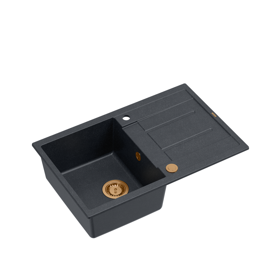 MORGAN 111 GraniteQ zlewozmywak black diamond z syfonem Push To Open 1-komorowy z/o / elementy miedzianeMORGAN 111 GraniteQ zlewozmywak black diamond z syfonem Push To Open 1-komorowy z/o / elementy miedziane