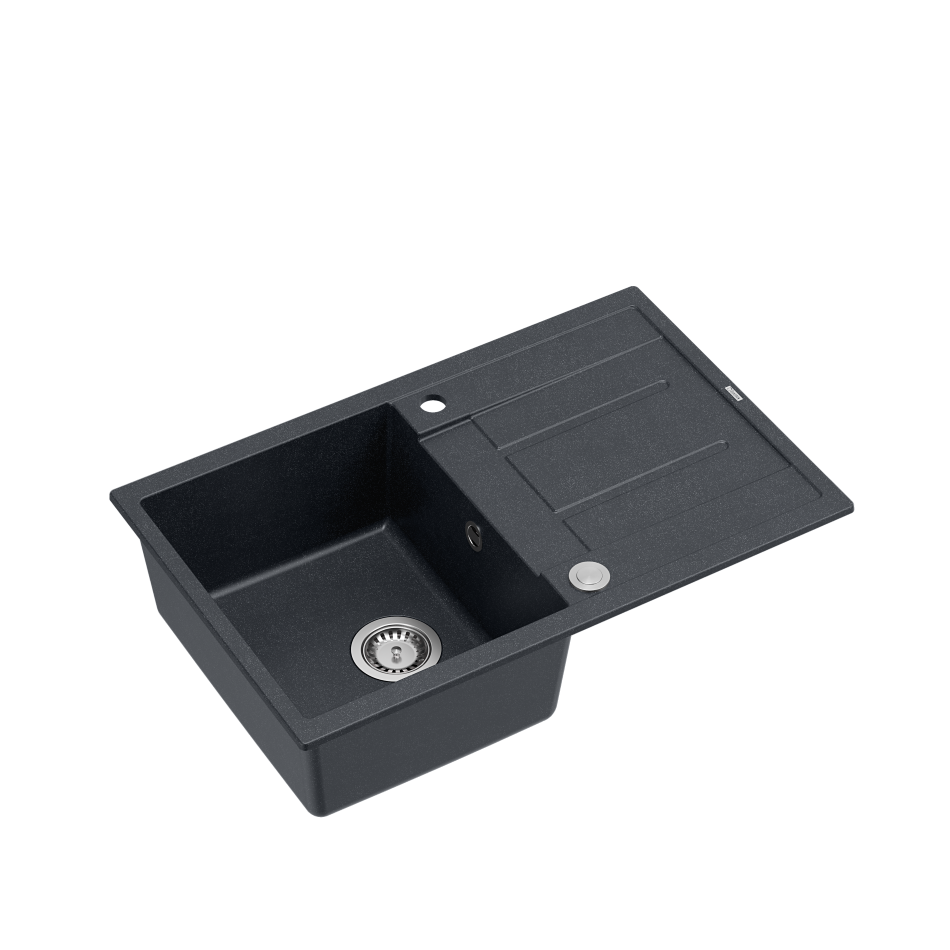 MORGAN 111 GraniteQ zlewozmywak black diamond z syfonem Push To Open 1-komorowy z/o / elementy stal szlachetnaMORGAN 111 GraniteQ zlewozmywak black diamond z syfonem Push To Open 1-komorowy z/o / elementy stal szlachetna