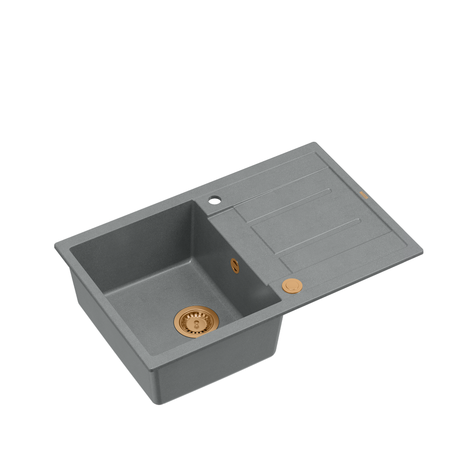 Strona główna » KUCHNIA » MORGAN 111 GraniteQ zlewozmywak silver stone z syfonem Push To Open 1-komorowy z/o / elementy miedziane
