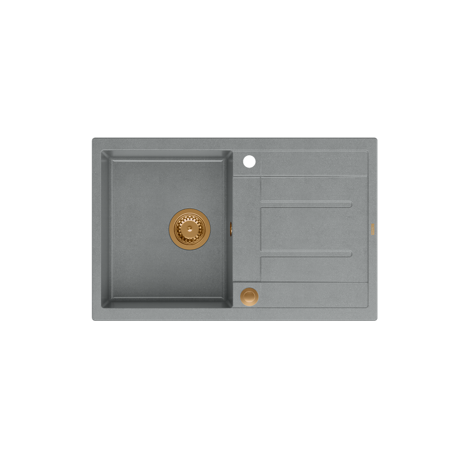 MORGAN 111 GraniteQ zlewozmywak silver stone z syfonem Push To Open 1-komorowy z/o / elementy miedzianeMORGAN 111 GraniteQ zlewozmywak silver stone z syfonem Push To Open 1-komorowy z/o / elementy miedziane