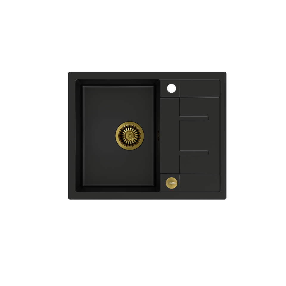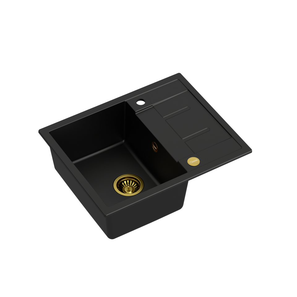 MORGAN 116 GraniteQ pure carbon/elementy złote Zlewozmywak wykonany z GraniteQ gwarantuje najwyższą higieniczność i trwałość . Nowoczesne wzornictwo – dostosowane do aktualnych trendów. GraniteQ – zapewnia dużą twardość, trwałość i higieniczność powierzchni Zlewozmywak odwracalny – komora może być zamontowana po prawej lub lewej stronie. Rozetka przelewu również wykonana jest ze stali szlachetnej SteelQ w technologii PVD w kolorze dopasowanym do koloru pozostałych elementów co jeszcze bardziej podkreśla jego urodę. Zlewozmywak wyposażony jest w odpływ ze stali szlachetnej SteelQ w technologii PVD w kolorze dopasowanym do pozostałych elementów co nadaje produktowi elegancki wygląd oraz w syfon z możliwością podłączenia zmywarki lub pralki Głębokie i pojemne komory zlewozmywaków Quadron to ich cecha wyróżniająca, która zapewnia duży komfort użytkowania. Łatwy montaż - w komplecie zaczepy mocujące Wersja Premium Głębokie komory zlewozmywaków Quadron to ich cecha wyróżniająca. Pojemna komora to przede wszystkim duży komfort użytkowania. Zmywanie dużych garnków czy blach nie stanowi problemu dzięki temu, że pojemność zlewozmywaka jest zwiększona o kilka litrów. Zlewozmywak wyposażony jest w odpływ ze stali szlachetnej SteelQ w technologii PVD w wybranym kolorze co nadaje mu elegancki wygląd. GraniteQ - wygląd & trwałość Produkty wykonane z GraniteQ zapewniają nowoczesny wygląd i długowieczność produktu. Są łatwe do utrzymania w czystości, odporne na wysokie temperatury (gorące garnki) oraz tak częste w kuchni nagłe jej zmiany (wrząca i zimna woda), odporne na działanie czynników chemicznych oraz wiele rodzajów osadów (np. po kawie czy herbacie). GraniteQ – wytrzymałość & higiena Materiał GraniteQ stworzony jest z drobnych cząsteczek granitu (75-80%) połączonych ze sobą za pomocą wysokiej jakości spoiwa (20-25%), dzięki czemu zlewozmywak charakteryzuje się wyjątkową wytrzymałością i odpornością. Zastosowanie bardzo drobnych cząsteczek granitu minimalizuje przestrzeń wypełnioną spoiwem, dzięki czemu udało się uzyskać zlewozmywak jedwabiście gładki i delikatny w dotyku, co również ma ogromne znaczenie podczas czyszczenia i konserwacji, ale przede wszystkim dla higieny i zachowania czystości. GraniteQ – metaliczny blask GraniteQ to nowoczesny materiał w opalizujących kolorach uzyskanych dzięki domieszce metalicznych drobinek. Nawet najbardziej wymagający użytkownicy będą usatysfakcjonowani gdy światło z oświetlenia umieszczonego nad blatem sprawi, iż kuchnia zabłyszczy delikatnym połyskiem swojej nowej biżuterii: zlewozmywaka marki Quadron. Efekt ten zostanie spotęgowany dzięki dodaniu baterii, odpływu i przelewu wykonanych ze stali szlachetnej SteelQ w technologii PVD w kolorach złota lub miedzi.