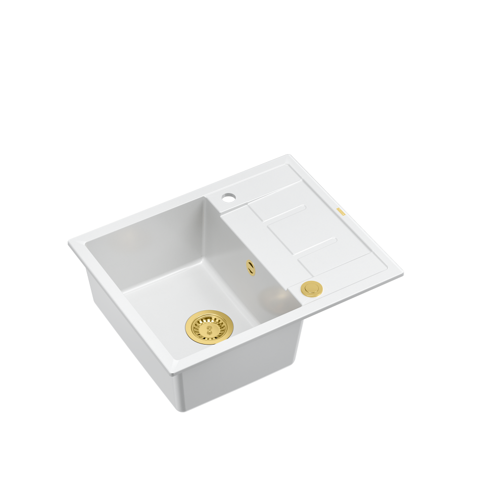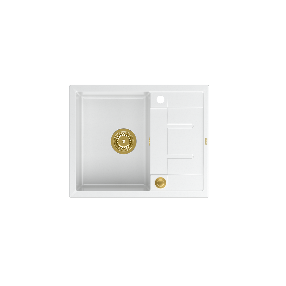 Strona główna » KUCHNIA » MORGAN 116 GraniteQ zlewozmywak snow white z syfonem Push To Open kol. złoty 1-komorowy z/o + zaczepy 4 szt