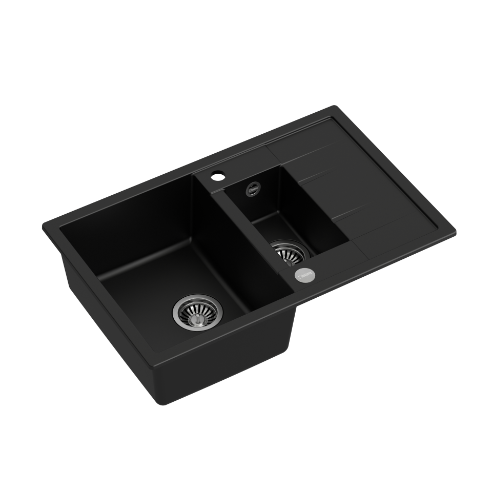 MORGAN 156 GraniteQ pure carbon/elementy stalowe Zlewozmywak wykonany z GraniteQ gwarantuje najwyższą higieniczność i trwałość . Nowoczesne wzornictwo – dostosowane do aktualnych trendów. GraniteQ – zapewnia dużą twardość, trwałość i higieniczność powierzchni Zlewozmywak odwracalny – komora może być zamontowana po prawej lub lewej stronie. Rozetka przelewu również wykonana jest ze stali szlachetnej SteelQ w kolorze dopasowanym do koloru pozostałych elementów co jeszcze bardziej podkreśla jego urodę. Zlewozmywak wyposażony jest w odpływ ze stali szlachetnej SteelQ w kolorze dopasowanym do pozostałych elementów co nadaje produktowi elegancki wygląd oraz w syfon z możliwością podłączenia zmywarki lub pralki Głębokie i pojemne komory zlewozmywaków Quadron to ich cecha wyróżniająca, która zapewnia duży komfort użytkowania. Łatwy montaż - w komplecie zaczepy mocujące Wersja Premium Głębokie komory zlewozmywaków Quadron to ich cecha wyróżniająca. Pojemna komora to przede wszystkim duży komfort użytkowania. Zmywanie dużych garnków czy blach nie stanowi problemu dzięki temu, że pojemność zlewozmywaka jest zwiększona o kilka litrów. Zlewozmywak wyposażony jest w odpływ ze stali szlachetnej SteelQ . GraniteQ - wygląd & trwałość Produkty wykonane z GraniteQ zapewniają nowoczesny wygląd i długowieczność produktu. Są łatwe do utrzymania w czystości, odporne na wysokie temperatury (gorące garnki) oraz tak częste w kuchni nagłe jej zmiany (wrząca i zimna woda), odporne na działanie czynników chemicznych oraz wiele rodzajów osadów (np. po kawie czy herbacie). GraniteQ – wytrzymałość & higiena Materiał GraniteQ stworzony jest z drobnych cząsteczek granitu (75-80%) połączonych ze sobą za pomocą wysokiej jakości spoiwa (20-25%), dzięki czemu zlewozmywak charakteryzuje się wyjątkową wytrzymałością i odpornością. Zastosowanie bardzo drobnych cząsteczek granitu minimalizuje przestrzeń wypełnioną spoiwem, dzięki czemu udało się uzyskać zlewozmywak jedwabiście gładki i delikatny w dotyku, co również ma ogromne znaczenie podczas czyszczenia i konserwacji, ale przede wszystkim dla higieny i zachowania czystości. GraniteQ – metaliczny blask GraniteQ to nowoczesny materiał w opalizujących kolorach uzyskanych dzięki domieszce metalicznych drobinek. Nawet najbardziej wymagający użytkownicy będą usatysfakcjonowani gdy światło z oświetlenia umieszczonego nad blatem sprawi, iż kuchnia zabłyszczy delikatnym połyskiem swojej nowej biżuterii: zlewozmywaka marki Quadron. Efekt ten zostanie spotęgowany dzięki dodaniu baterii, odpływu i przelewu wykonanych ze stali szlachetnej SteelQ .