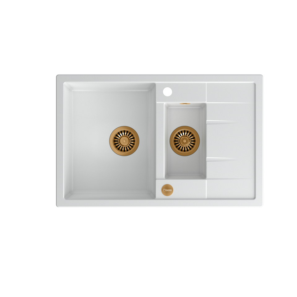 Strona główna » KUCHNIA » MORGAN 156 GraniteQ zlewozmywak snow white z syfonem Push To Open okrągły 1,5-komorowy z/o / elementy miedziane